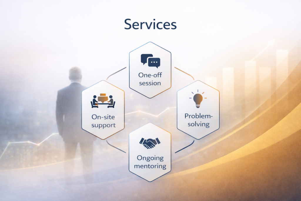 It is tailored consulting, mentoring, and coaching support — grounded in experience and focused on real business outcomes.